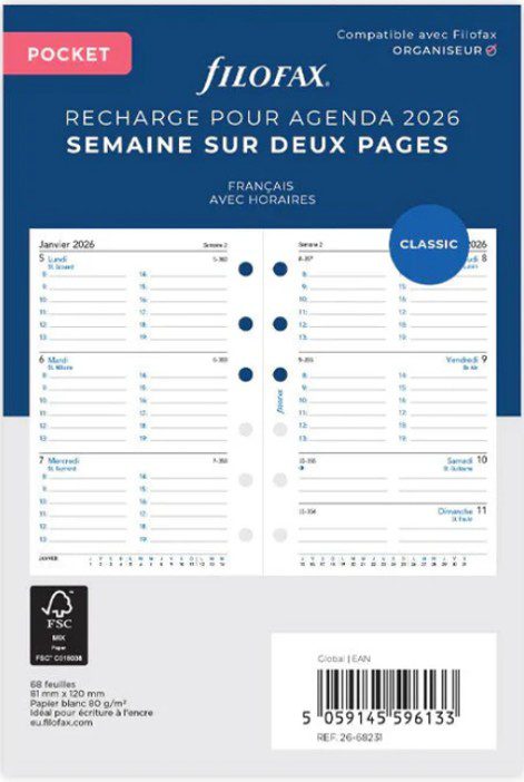 La boutique LinK vous propose un produit de la marque Filofax : la Recharge Agenda Pocket – 1 Semaine /2 Pages – Français.