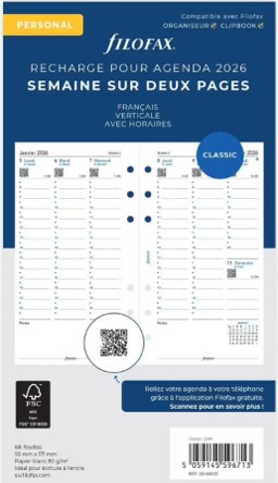 La boutique LinK vous propose un produit de la marque Filofax : la Recharge Personal Semaine /2 Page Vertical Français 2019.