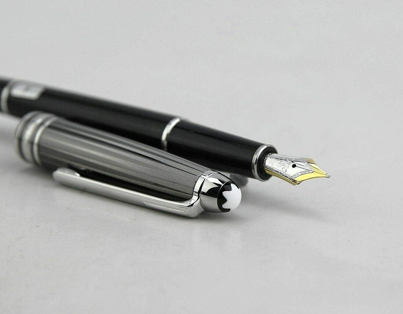 - Son design bi-matière exclusif, avec la rencontre d’un corps en résine noire emblématique de Montblanc et d’un capuchon en acier haute finition, gravé avec une précision artisanale.