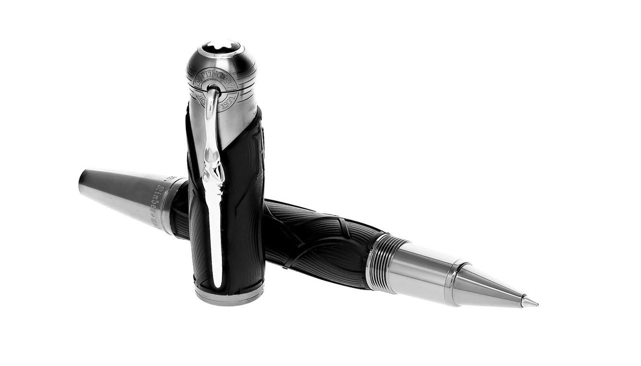 - Le capuchon de légende, orné de la signature des auteurs, d’une finition ruthénium sombre et bien évidemment surmonté de l’emblème Montblanc.
